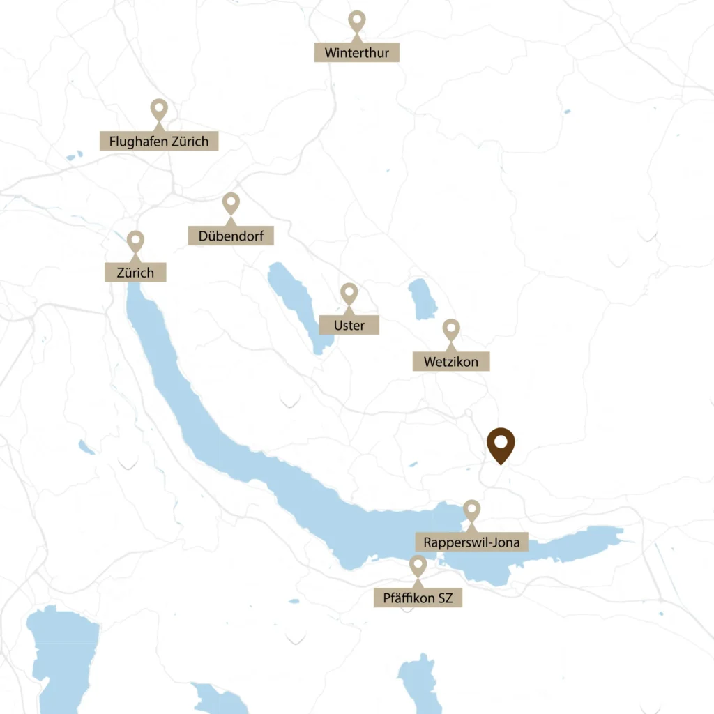 Dank der Nähe zu Rüti, Wetzikon und Bubikon profitieren Sie von einer optimalen Anbindung – sei es mit dem Auto oder der Bahn. Zürich erreichen Sie bequem in rund 35 Minuten. So bleibt mehr Zeit für das Wesentliche im Leben – sei es mit der Familie, in der Natur oder einfach für sich selbst.